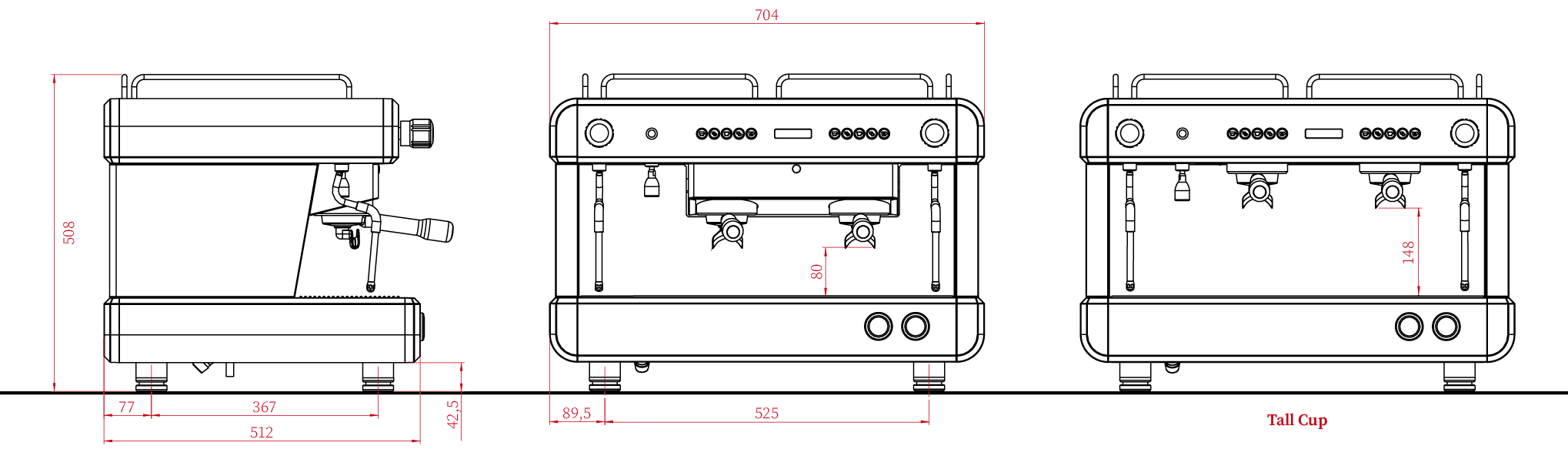 بدنهی تمامفلز دستگاه حس استحکام و دوام طولانیمدت میدهد؛ چیزی که برای استفاده فشرده روزانه ضروری است. در بخش کاربری، یک نمایشگر دیجیتال قرار دارد که وضعیت دما، حجم، برنامهریزی و سایر تنظیمات را شفاف و قابلفهم نمایش میدهد و کار باریستا را سادهتر میکند.